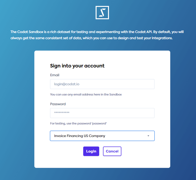 • Create a Codat companyCompany In Codat, a company represents your customer's business entity. Companies can have multiple connections to different data sources. and connect it to the Codat Sandbox,